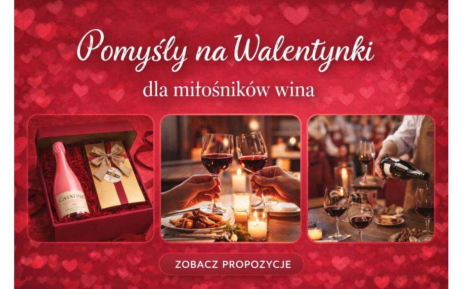 Pomysły na Walentynki dla miłośników wina – od eleganckich prezentów, przez romantyczne kolacje, po degustacje komentowane. Sprawdź inspiracje, ciekawostki o święcie zakochanych oraz nasze specjalne walentynkowe propozycje w sklepach i wine barach.